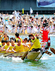 | 水しぶき上げて、ペーロン競漕 兵庫・相生 |
