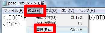 | 写真(5)は、「編集」→「置換」です。 (1)「編集」をクリック→「置換」をクリック |