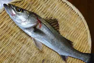 親戚の人が「スズキが釣れた」と、持ってきてくれました。42cmもあり、まだいきていました。