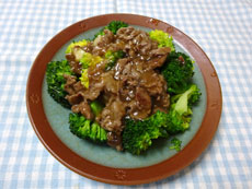 | ブロッコリー・・・300g 牛肉・・・150g ニンニク・・・適宜 ごま油・・・大1 A(水100cc、ごま油小1、塩1つまみ) B(水150cc、オイスターソース・しょうゆ・砂糖各大1/2、酒大1、片栗粉大1) |