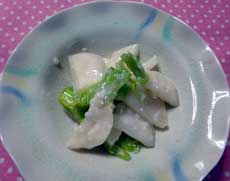 1.かぶは皮をむき、それを半分に切って、5o幅に切る。