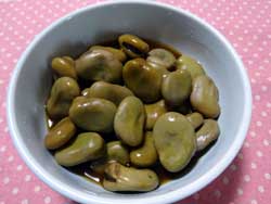2.鍋に1p程の水を入れて、沸騰したら空豆を入れる。中火で2分茹でる。