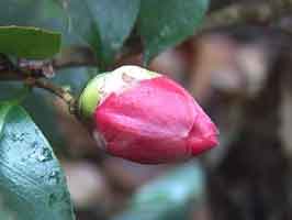 大手門への道に咲く3月のツバキ 感状山城跡大手門への標識 矢野町森から大手門への古道