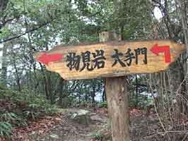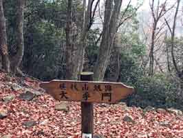 大手門前の石の階段 感状山城跡大手門の標識 大手門から上り口を見る
