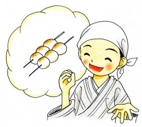 「何て、ひょっこりじゃがい。まるうてうまいもんじゃ。お前、上手にするはずじゃが」 「しゃてて、私、知りまへんがな」 「おどれ、うそぬかす。ひょっこり知らんちゅうことがあるもんか」といいながら、婿は棒で嫁の頭を叩いた。 「なにしてんだすいな。だんごのような瘤が出ましたがな」 「おお、かかあ、そのだんごぃやい」と婿がいうた。 |