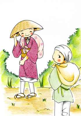 山家(やまが)の人が、学問をしに京へのぼりよった。同じようにのぼる人があったので