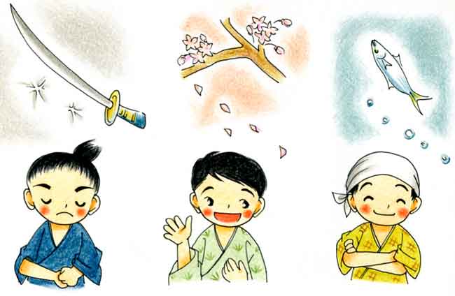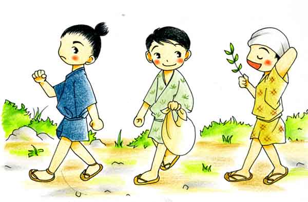 さむらいの子と、町人の子と、百姓の子とが、同じお師匠(ししょう)の所へ本を読みに通うていた。 |