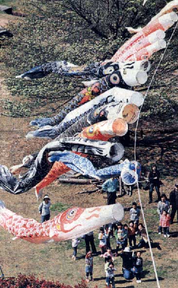 | こいのぼり30匹大空へ 相生・岩屋谷公園幼児らも参加 |