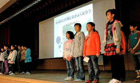 | 1年間の学習成果を発表する子どもら=相生市旭、市民会館 |