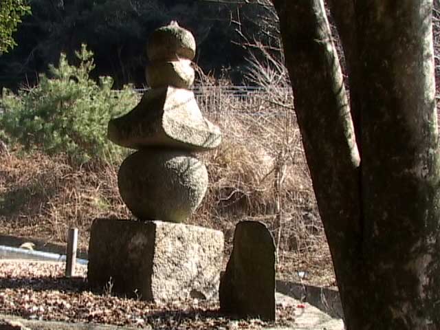 | 聖徳太子に重く用いられたのが、秦河勝です。そんな関係で、秦河勝は、時の権力者である蘇我入鹿に憎まれ、赤穂の坂越に逃れて来ました。 ある時、秦河勝は、獲物を求めて、谷から谷へ走りまわっていました。しばらくすると、三匹そろって帰ってきて、激しくほえ始めました。犬はますますほえて、とうとう秦河勝の両足にかみつきました。 秦河勝は、何を思ったか、刀を抜いて、三匹の名犬を切り殺してしまいました。 切られた犬の首は、向かいの山へ飛んで行って、大蛇の首に喰いついていました。 秦河勝は、持っていた弓を三つに切って、卒塔姿をつくり、ねんごろに葬ってやりました。 |