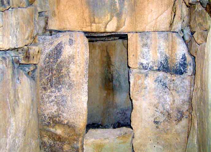 (玄室の入口)、玄室(遺体を納める部屋)にわかれており、特に玄室は、奥壁、両側壁、天井、床石ともに一枚石で、あたかも組合せ式石棺の長辺に入口をつけたような、めずらしい構造をもっています。