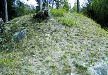 この古墳は、宝台山より南にのびる丘陵の山麓に、単独で築かれた7世紀中頃の円墳です。 古墳は、一辺約15m、高さ3mあり、墳丘は見かけ三段につくられています。各辺には外護列石がめぐらされており、堀の跡も残っています。