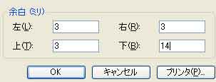 | *2。「四辺フチなし」の項目がない時の余白は左右上(3)、下(14)に設定して下さい。 | ||||