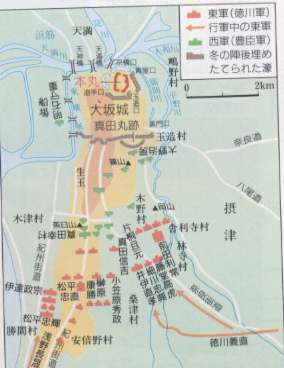 家康さんは、大坂城の総堀りの埋め立てを見て、大坂をはなれました。 |