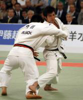 初戦で、100キロ超級の選手に豪快な背負い投げで一本勝ちし、勢いがついた。2回戦はアテネ、北京両五輪覇者の内柴正人選手(旭化成)から体落としで技ありを奪って勝利。試合巧者ぶりを発揮した3回戦は危なげない試合運びで3−0の判定勝ちを収めた。 準々決勝は今大会の出場選手中、最多出場回数(11回)を誇る綜合警備保障の生田秀和選手。注意による有効を取られて敗れたが、体落としから背負い、さらに寝技につなげる連係で攻め立てるなど、体重差40キロの相手と互角に渡り合った。 大会前、「重い選手と戦うのは苦にならない。内柴選手を倒したい」と話していた松本選手。初めての大舞台で有言実行し、たぐいまれな柔道センスをアピールした。 まだまだ強くなる可能性を秘めた24歳。「もっと力と技を磨いて国際大会でも活躍できる選手になりたい」。 ロンドン五輪に向けた第一歩を踏み出した。 |