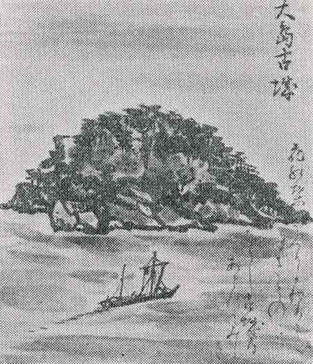 | 長治元年、海老名家季が大島山に城郭を築いたという。海老名家は、この地方の豪族であった。 伝説としては、播磨三代海老名盛重が富士の裾野の巻狩に白狐を退治した功によって、源頼朝から大島を拝領したともいわれるが、一説には、播磨7代海老名弾正忠景知が主君赤松則村の催した佐方の狩座で白狐を退治した功によって則村から恩賞として与えられたともいわれている。 佐方の狩は、建武3年(1336)3月の末で頼朝の富士の巻狩りより数えて実に144年後のことである。 大島は、元は島であったが、三角州によって現在は陸続きである。 |