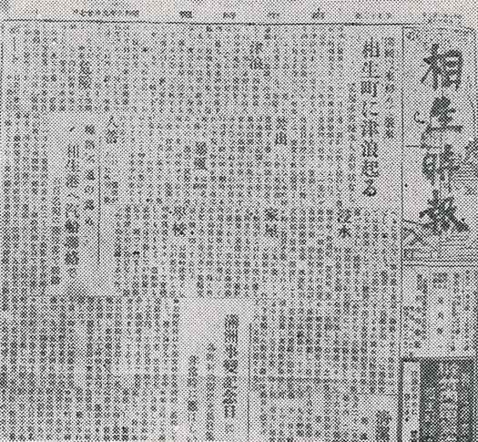 7 昭和9年(1934)9月21日に、室戸台風による相生湾一帯の大被害がある。早朝来風強く、相生小学校は臨時休校新町・宮西町・天神町一帯は水位一米ほどの浸水、送電線故障で停電、浸水家屋約三百軒、倒れた家三軒。この高潮は相生始まって以来と「相生時報」は上の写真のように報道している。