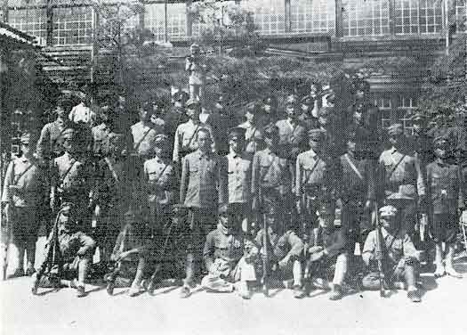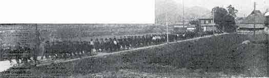 第二次世界大戦の戦勝を祈顧する若狭野国民学校=(毎月1日に全校生徒が神社参拝)
