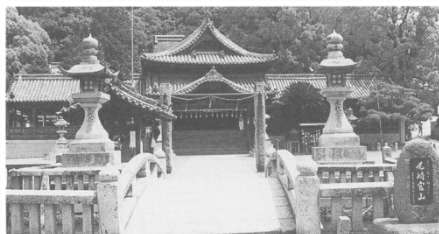 The Hachiman shrine that is dedicated to the emperor Chyuai, Ohjin and the empress Jinguu in the early 5th century is the main god the Asanos and in the southern part of Akoh. It is deep relation with the Asanos and it was accept pay 15koku a year by the first Nagamasa,Naganori set about it in the 7th year of Enpoh (1679). It was made about a Mikoshi in the first of Gen- roku (1688) and a rite was done,and it became big shrine. It is remained of many relic that Hoteigaku was drawn by Yoshio Ohishi,a horse saddle and Mikidokkuri was given by Yoshio,a Japanese calligraphy was written by Yasoemon Okajima,and letters was written by Souemon Hara and Tadasumi Kondoh is treasured. At the back of shrine remains a stone lantern that was erected by Yoshio. (2)Osedo and cow stone,horse stone