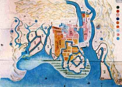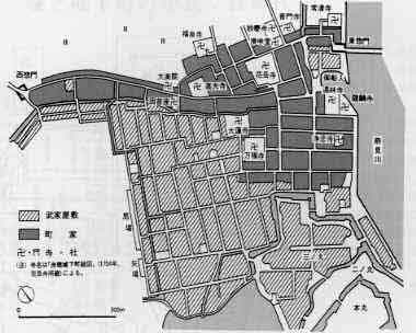 | 赤穂の城下町(元禄14年頃) 右が千種川、下が瀬戸内海 |