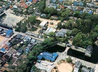 | 『赤穂市史第二巻』により、そのあらましを紹介しよう。 長直さんは、13カ年を費やして赤穂城は完成しました。東の熊見川と南の海岸線をうまく利用しています。 本丸内には東南隅に天守台を築き、この本丸をほぼ円形にとり囲んだ郭が二の丸です。 本丸から北へ出た所が本丸門で、その前に大石頼母・山鹿素行邸を配置しました。 二の丸の北・西を三の丸で囲み、この郭内には近藤正純・大石良欽などの重臣の邸を配置しました。 |