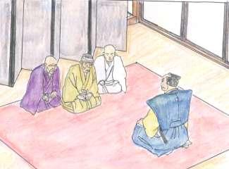 大久保さんが上野介さんを尋問(角石氏模写)