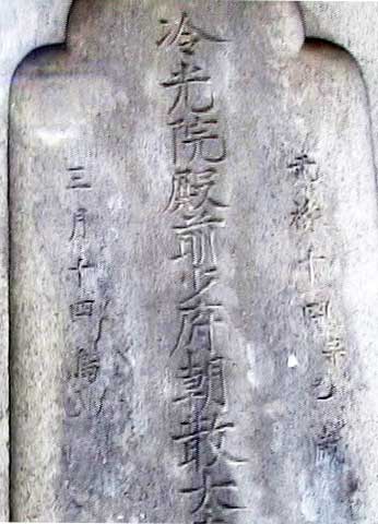 | 浅野長矩本人の戒名がある。 『冷光院殿前少府朝散太夫吹毛玄利大居士』 まあ「凄まじい」としか言い様のない戒名である。 まず「冷たい光」なんてのは普通絶対使わない。「前朝散大夫」というのは生前大名であったことを示す肩書きだが、「吹毛玄利」とは一言で言えば「抜き身の利剣」ということだ。つまり日本刀が鞘から抜かれて青白く冷たく光っているというのが、この戒名のイメージである。確かに幕府から切腹を命ぜられた人間だから、あまり「良い戒名」は付けられないのだが(ちなみに大石内蔵助良雄ら切腹した四十六士の戒名には、すべて刑死させられたことを示す「刃」と「叙」の一字が必ず入っている。ちなみに大石は「忠誠院刃空浄叙居士」堀部安兵衛は「刃雲輝叙信士」である)、それにしてもこれは「冷たい」。狂気のイメージがやはりあると言ったら、牽強付会が過ぎると言われてしまうのだろうか。 |