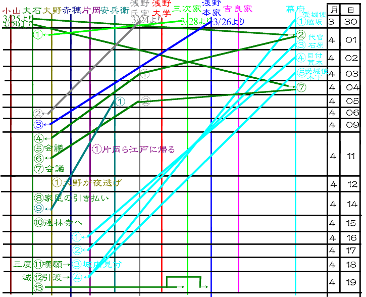 内蔵助派、片岡派、安兵衛派、大野派らに分裂