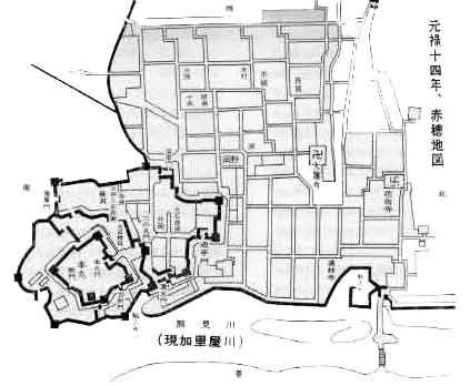| 事件当時の赤穂地図(『赤穂義士事典』) |
