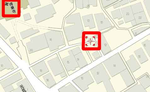| 中央右の□が神崎与五郎の孝行井戸位置 |