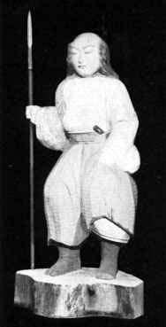 | 萱野三平さんの直筆(左)と木像(大石神社蔵) | |