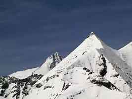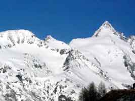 | グロースグロックナーと、真白の美しい三角形ヨハネスベルク。そこから流れ出るようなパス テルッツェ氷河 | |