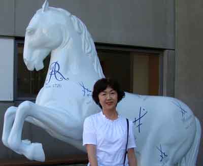 | マイセンでは、磁気工房を見学。日本語のイヤホンを聞きながら、目の前で絵付けの様子などを見せてくれました。 その後、ショッピングタイム。皆さま、色々と買われていましたね。 マイセンは青い剣がトレードマーク。 マイセンは、有田焼から大きな影響を受けていて、佐賀県の有田市とは姉妹都市です。 |