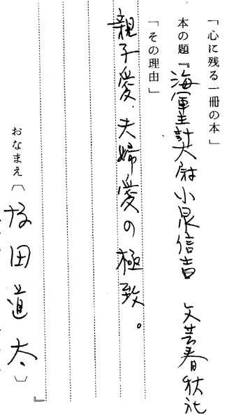 小泉信三「海軍主計大尉小泉信吾」(文芸春秋社※) 『親子愛、夫婦愛の極致』 |