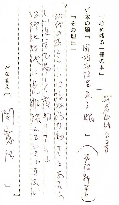| テキスト:*関 寛治(昭2)東大教授 国際政治学 武者小路公秀「国際政治を見る眼」(岩波新書※) 『現代のあたらしい国際政治の動きをあたらしい見方で易しく説明している。国際化時代に是非読んでいただきたい』 |