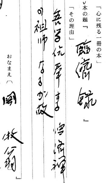 「臨済録」(岩波文庫) 『吾学統率する臨済禅の祖師なるが故』 |