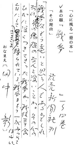 「戦争」(読売新聞社染1〜4巻) 『戦争はもう遠いと思う人もあるかもしれない。だが、その傷痕のなんと深いことか。その心のひだ に深くつきささった戦争が、戦後30余年にしてさまざま語られている。戦争をもう一度みつめてほ しい』 |