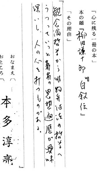 | テキスト:001 *本多淳亮(大14)大阪市大教授 労働法学 柳田謙十郎「自叙伝」( ) 『観念論哲学から唯物弁証法の哲学へうつっていった著者の思想遍歴が興味深いし、人の心を打つものがある』 |