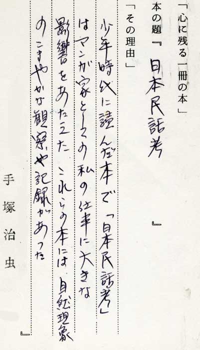 | 手塚治虫さんより届いた直筆の「心の残る一冊の本」 |