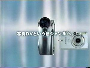 (6)ここで学んだこと…ここでもパソコンリーダーは先見の明が必要右の写真は2003年から現在(2004年)放映しているキャノンのデジタルビデオカメラのCMである。キャッチフレーズは「写真DVという新ジャンルへ」である。内容は先述したように、「ビデオカメラはデジカメになるが、デジカメはビデオカメラにはならない」キャノン版ということである。つまり写真(デジカメ)+DV(デジタルビデオ)ということ。パソコン本体は勿論のこと、その周辺機器を合わせると、大変な金食い虫である。予算があり余っているいる所は別として、デジカメを買い、またビデオカメラを買ったのでは無駄としかいいようがない。 ビデオカメラを買ったなら、動画を取り込んで静止画にしたり、動画を編集するパソコンを購入する必要がある。その時の出たとこ勝負では、パソコンリーダーとはいえない。 時代を先取りした研修が、予算を有効にしかも発展的に使える武器となるのではないでしょうか。 |