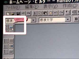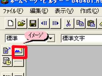 | 【実行例】 イメージを張る部分をクリック→「イメージ」をクリック→「参照」→「フォルダの指定」→使用するイメージをクリック→「開く」 【問題点】 「イメージ」をクリックといっても、どの部分を指しているのか、分からない人が多く、研修や講座には余り効果的ではありませんでした。 | |||