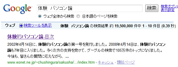 2009年4月14日は、体験的パソコン論も8年目に入りました。