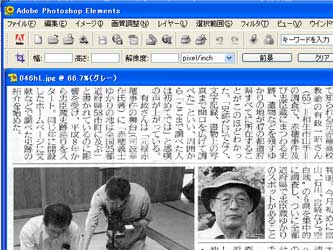 | B6万バイト以下の写真入り新聞記事の完成→クリックすると、6万バイト以下の原寸が確認できます。 Cさらに、ホームページビルダーで6万バイト以下にした写真と比較できます。 |