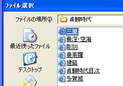 | 写真(4)は日本史¥古代¥貞観時代のフォルダから「三筆」を開いています。 |