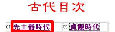 | 写真(1)は日本語入力のページです。 (1)自分のパソコンのブラウザ(Webネット)画面で見ています。 (2)「先土器時代」をクリックします。 |