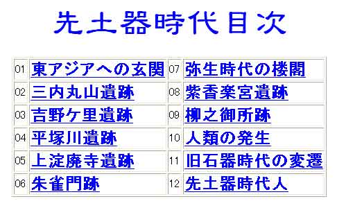 | 写真(2)は自分のパソコンのブラウザ(Webネット)画面です。 (1)リンク先のページです。 (2)リンク先の先土器時代目次が表示されました。 |