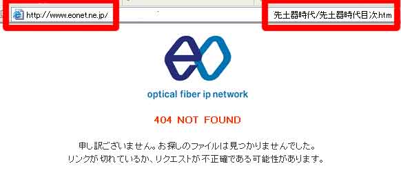 | 写真(4)はインターネット上のページです。 (1)リンク先のページです。 (2)リンク先の先土器時代目次が表示されず、「NOT FOUND」(見つかりません)が表示されました。 |