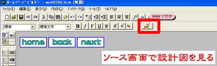| 写真(1)は、「WWWブラウザ」をクリックしています。 (1)ブラウザ画面にする方法T−ホームページビルダー3の「WWWブラウザ」をクリック |