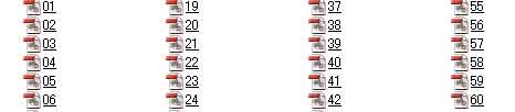 | 参考資料(2)は、アルバム用原簿(横)の「10」ページです。 (1)「<IMG src="60.jpg" height="200" width="262">」は、高さ200×幅262に縮小された写真(60.jpg)の意味です。 (2)「<A href="60.jpg">」は、高さ200×幅262に縮小された写真(60.jpg)をクリックすると、リンク先の元のサイズの写真が表示されるという意味です。 (3)55.jpg〜60.jpgの写真をコピーすると、自動的にアルバムが作れます。つまり、60枚の写真のアルバムが完成します。 |