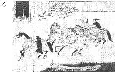 | B この神社には、江戸時代に奉納された大きな絵馬が残っていて、見事な馬が描かれている。今もさま ざまな祈願のために絵馬を奉納するが、絵馬を奉納する風習は古くからあったようだ。でもなぜ馬の絵 を描くのだろう。(c)馬と人間とのかかわりの歴史を調べてみると、馬を荷物を運ぶ手段や農耕のために 用いたり、雨乞いのために神社に奉納したりと、古くから人間の生活や信仰と深くかかわっていたことが わかる。そのことと関係するのだろうか。 また、境内には江戸時代に寄進された鐘が残っている。ふつう、鐘はお寺にあるものだが、これは (d)神仏習合の影響と考えられている。説明板によると、第二次世界大戦中に.兵器製造の材料などを 調達する名目で各地の鐘を政府に供出したが、この鐘は供出を免れたそうだ。この鐘にそのような歴史 があるとは知らなかった。(e)近代以降の神社の歴史についても、さらに調べてみたいと思った。 問4 下線部(c)に関連して、次の甲・乙の図に関して述べた文a〜dについて、正しいものの組合せを、 下の@〜Cのうちから一つ選べ。 | ||